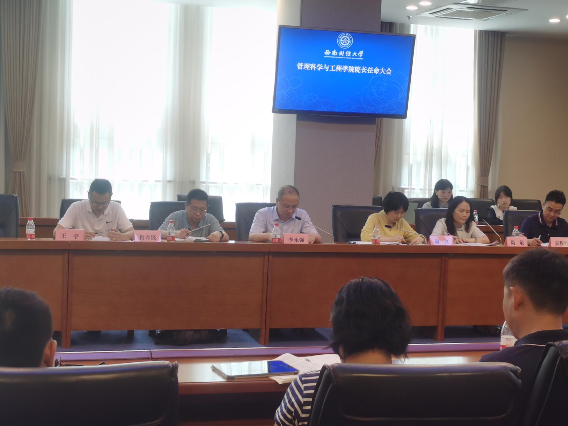7月15日下午,管理科学与工程学院在弘远楼109会议室召开院长任命大会。学校党委常委、副校长李永强教授和组织人事部部长谢红教授出席会议,学院全体教师参加会议,学院党委书记周敏主持会议。