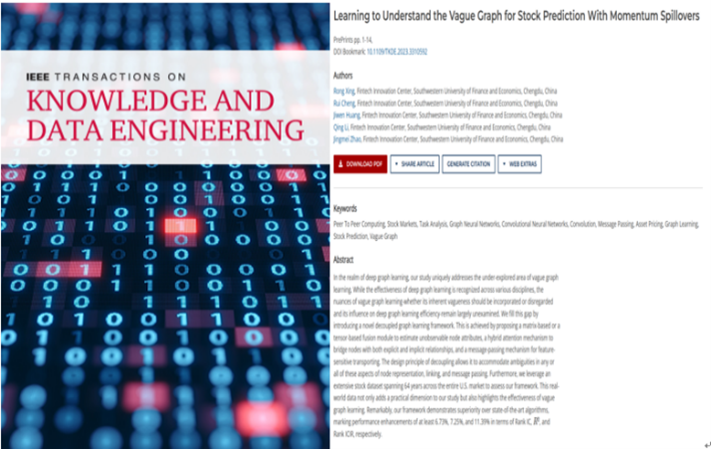 技术经济及管理专业2018级博士生程睿,在其导师指导下,共同完成学术论文“Learningto Understand the Vague Graph for Stock Prediction with Momentum Spillovers”。该篇论文被国际知名学术期刊《IEEE Transactions on Knowledge and Data Engineering》录用,并于2023年8月在该期刊上正式发表。