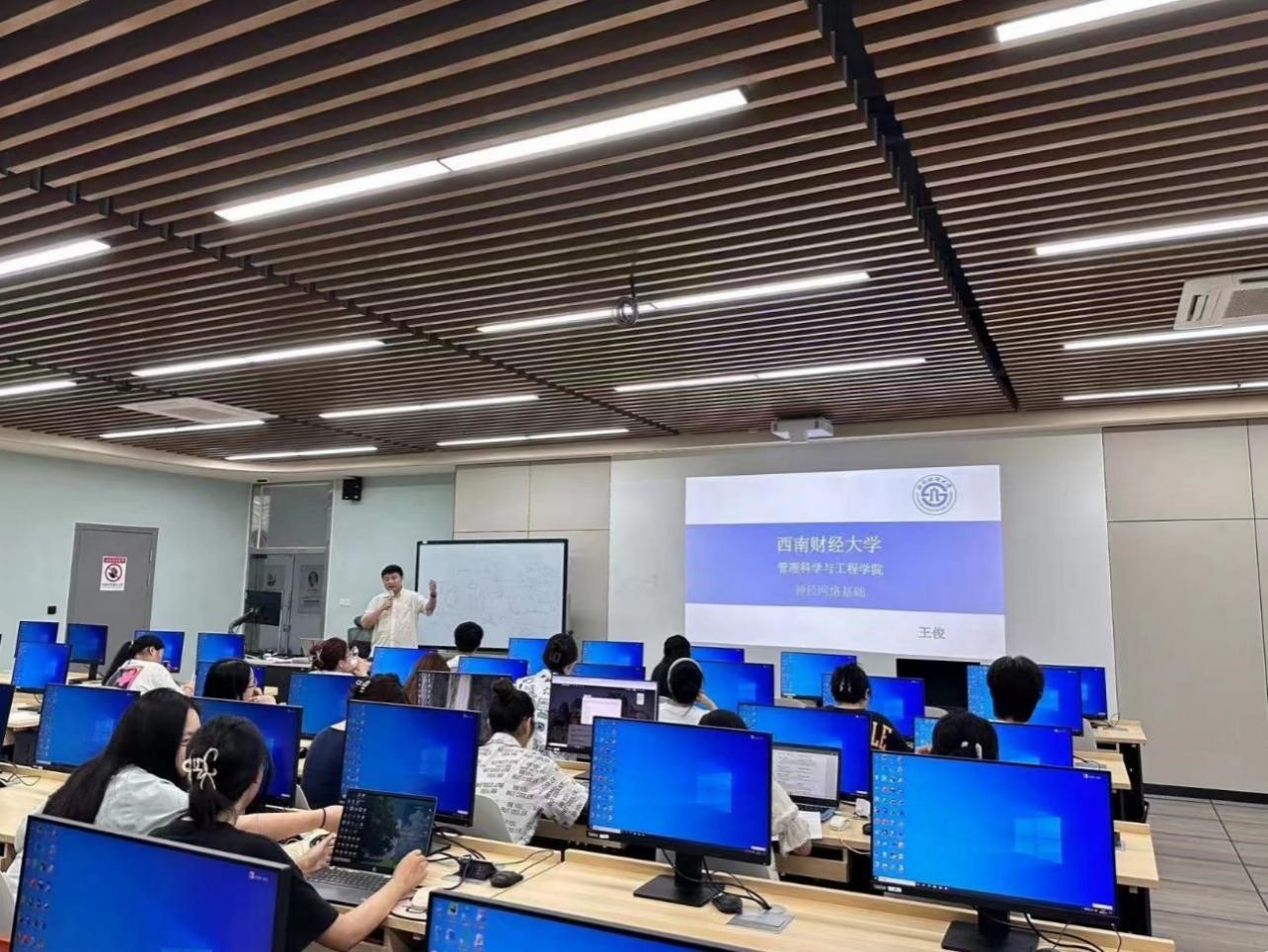 在开营仪式上,王俊教授首先对通过测验进入实训的同学表示祝贺,并对本实训的历史进行回顾。“雏鹰展翅”精英人才培育计划聚焦金融科技、数智科技前沿趋势,基于“人工智能+”的解决方案,以项目为导向,着力培养学生的发现问题、认识问题、解决问题的能力。实训项目后期转化为比赛项目,荣获花旗杯、中国大学生计算机设计大赛、中国移动梧桐杯等国家级比赛奖项10余项,省级奖项若干,切实提升学生的工程实践能力和金融科技素养。部分学生前往国内外顶尖高校深造(美国伯克利、新加坡国立等),毕业后就职于TOP金融机构、高校等。最后,王俊教授鼓励同学们努力学习、奋发作为,服务于现实需求,努力做出无愧于时代的业绩。