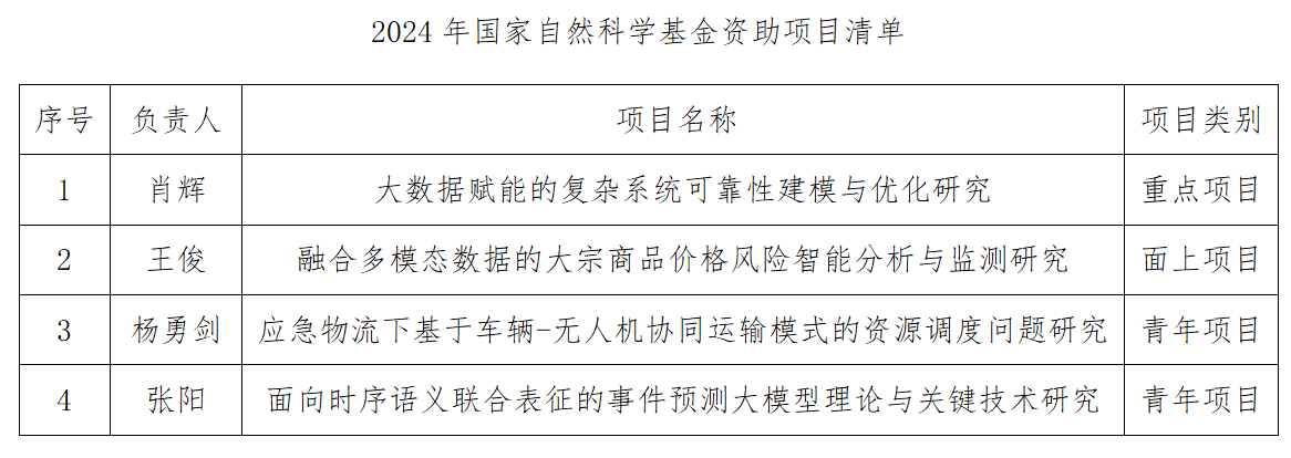 获得4项资助,其中国家自然科学基金重点项目1项、面上项目1项、青年项目2项,立项总经费261万。