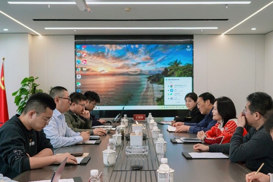 吴超总经理对周书记、鲁院长一行来访表示热烈欢迎,对长期以来学院对成都映潮科技股份有限公司的支持表示衷心的感谢,并简要介绍了公司文化,就人工智能应用、电子商务大数据、数智供应链等方面介绍了公司近几年的发展情况,吴超总经理表示,在人工智能大数据背景下,随着公司规模和项目的不断扩大,对高质量人才的需求日益剧增,西财是西南地区头部财经院校,希望双方持续加强联系、深入探索合作模式,为公司发展提供更多高素质专业人才。