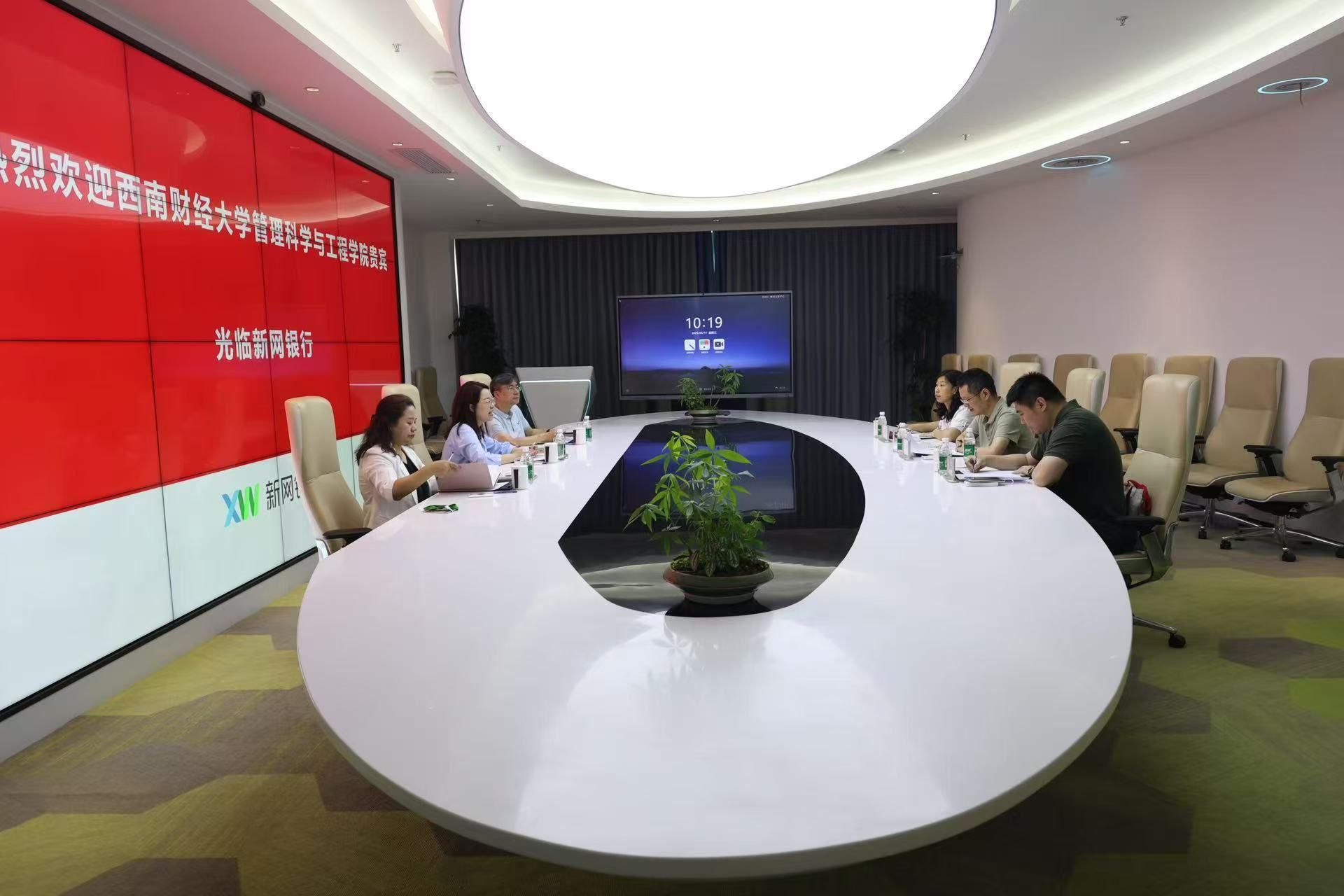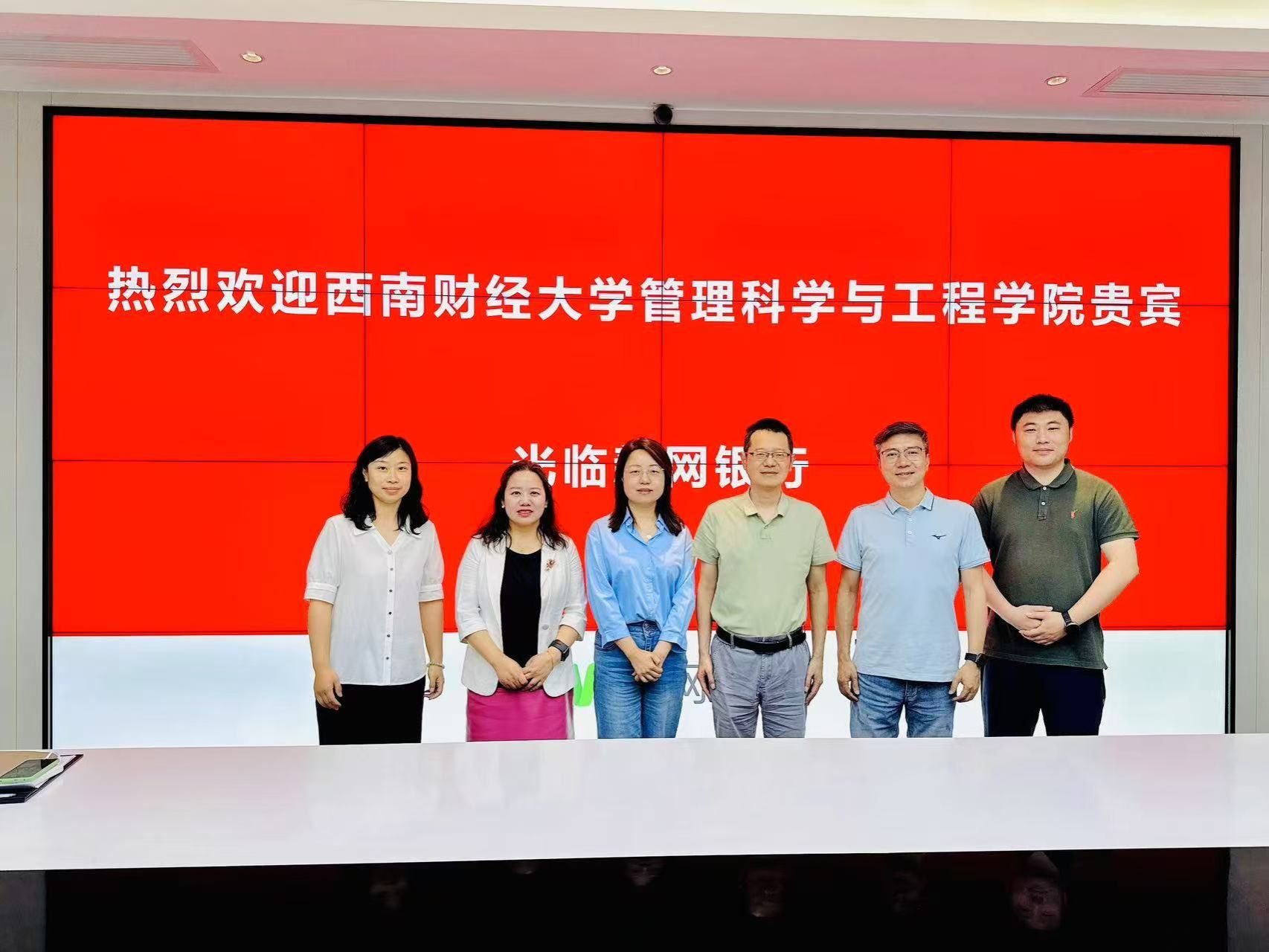 副院长王宇率队赴新网银行开展访企拓岗专项调研,计算金融系主任王俊、学生工作组组长严霞一同参与。新网银行行长助理、人力行政总监杨樊、信息科技部总监毛航及品牌市场部总经理许小青出席活动。