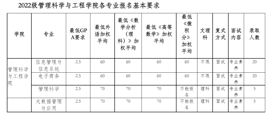 为鼓励本科生的学习积极性,本着公平竞争、公开录取的原则,开展2022级管理科学与工程学院转专业工作,根据学校2023年“光华创新人才实验班”选拔及转专业工作方案安排,特拟定本方案。
